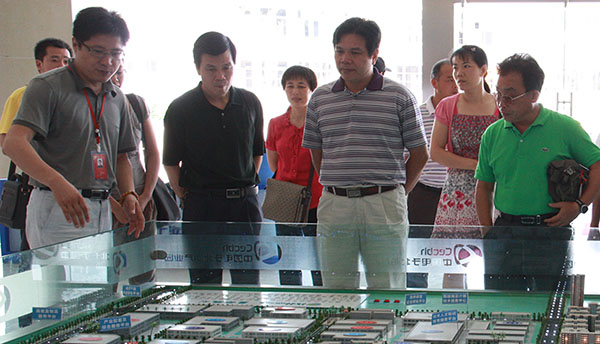2011年7月5日上午,貴港市科技局劉慶強(qiáng)局長(zhǎng)帶領(lǐng)干部職工一行30余人,在北海市科技局黃健局長(zhǎng)等陪同下,來(lái)到園區(qū)北部灣電子信息科技企業(yè)孵化器參觀考察。