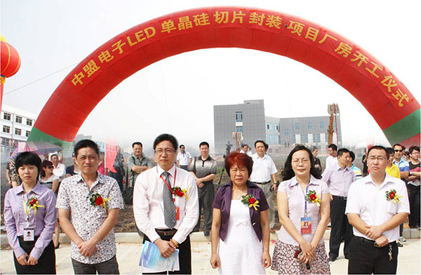 2011年10月28日上午,廣西北海中盟電子科技開發(fā)公司3號廠房舉行了隆重的開工儀式,該廠房建筑面積11000平方米,預(yù)計(jì)2012年7月底投入使用,主要從事LED封裝、單晶硅切片封裝、太陽能路板生產(chǎn)。