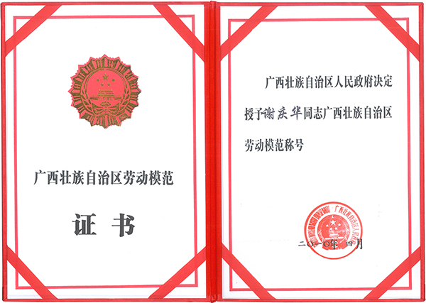 謝慶華總經理榮獲“廣西壯族自治區(qū)勞動模范”稱號