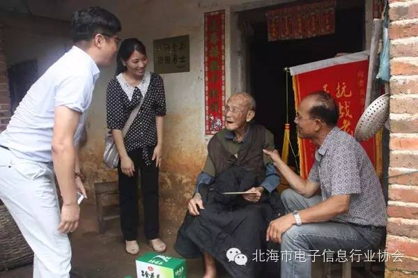 2015年8月15日,在這抗日戰(zhàn)爭(zhēng)勝利70周年之際,北海市電子信息行業(yè)協(xié)會(huì)與民革北海市委會(huì)聯(lián)合探望了三位抗戰(zhàn)老兵,送上慰問金與慰問品。大家傾聽老兵講述那段槍林彈雨的抗戰(zhàn)經(jīng)歷,分享來(lái)之不易的和平發(fā)展成果,打著拍子為老兵獻(xiàn)唱革命歌曲。