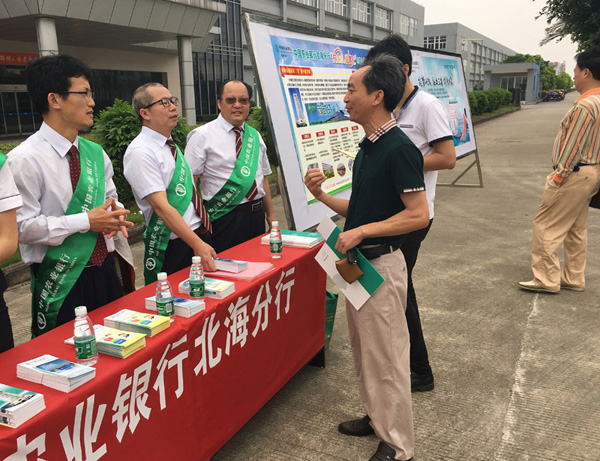 金融服務(wù)助力園區(qū)企業(yè)。配合營改增及雙創(chuàng)活動(dòng),農(nóng)業(yè)銀行北海分行主動(dòng)走入園區(qū),宣傳金融服務(wù)政策,為園區(qū)進(jìn)出口企業(yè)國際貿(mào)易給予最便利的結(jié)算及優(yōu)惠,為輕資產(chǎn)企業(yè)量身定造最便捷的融資渠道,助力解決園區(qū)企業(yè)資金需求。