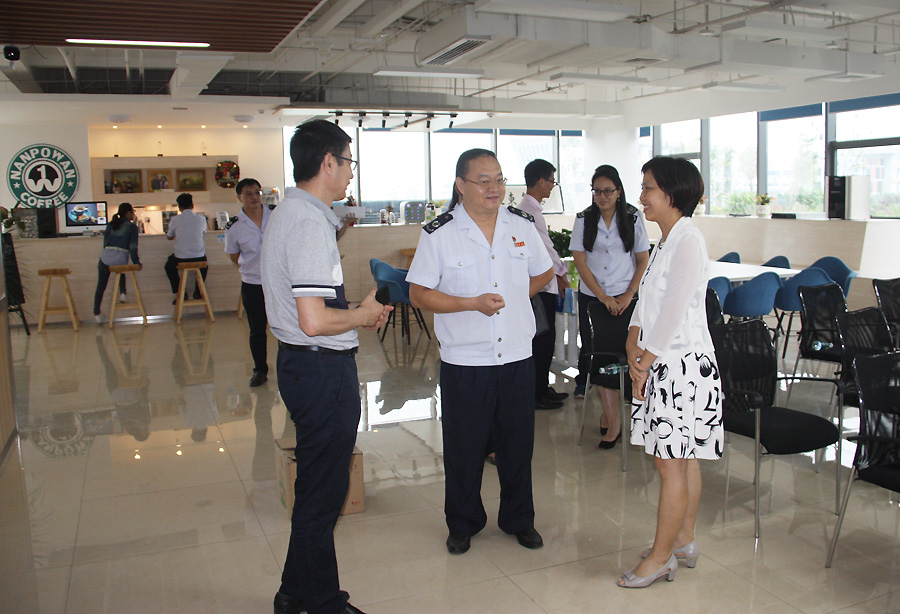 中電北海產(chǎn)業(yè)園相關(guān)業(yè)務(wù)負(fù)責(zé)人與稅務(wù)人員探討交流