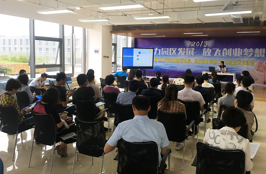 2018年4月25日,北海市工業(yè)園區(qū)國家稅務(wù)局、地方稅務(wù)局聯(lián)合在中國電子北部灣眾創(chuàng)空間舉辦了以“助力園區(qū)發(fā)展,放飛創(chuàng)業(yè)夢想”為主題的第27個稅收宣傳月活動,中國電子北部灣孵化器40余家企業(yè)代表參與了此次活動。